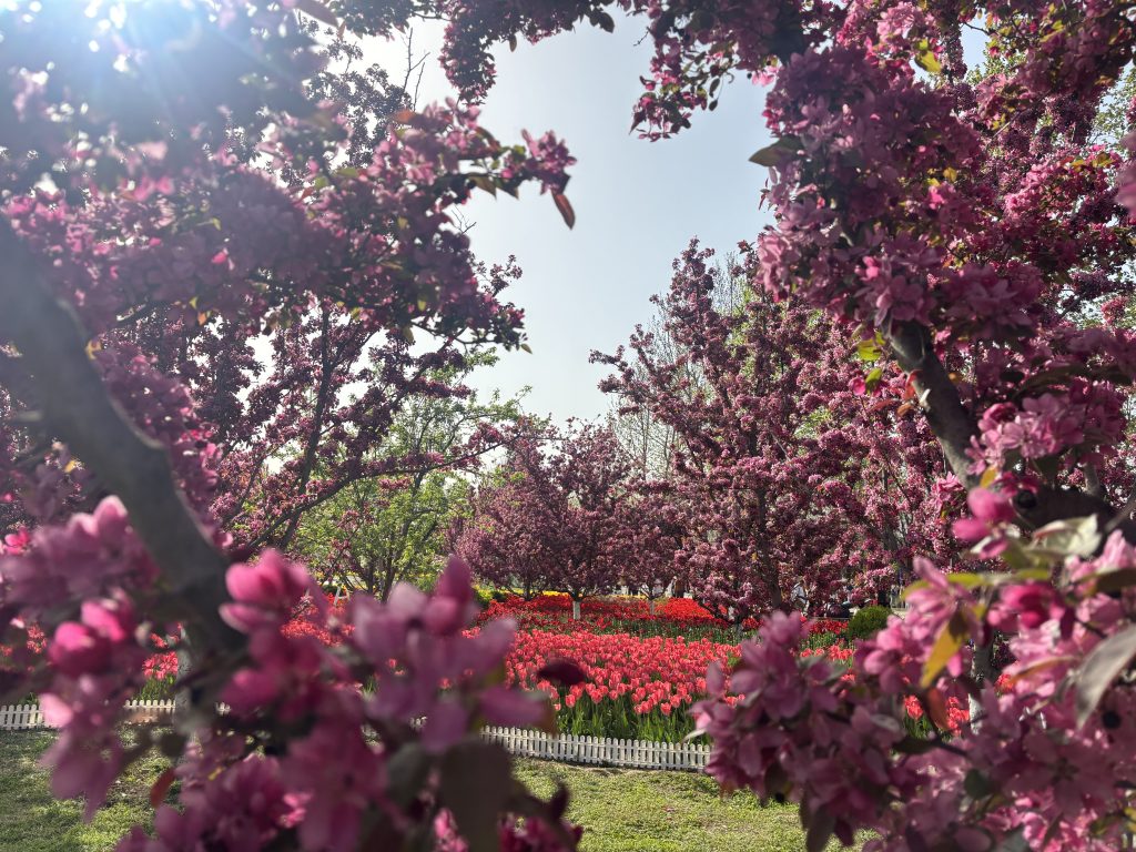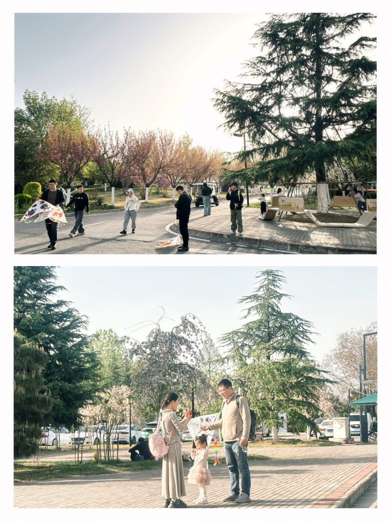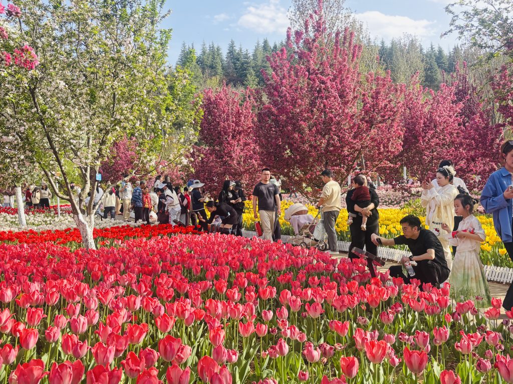 假期里,园区内郁金香、海棠等花卉竞相绽放,满目春色吸引着络绎不绝的游客。童趣风筝区里,大小朋友携手奔跑,各式风筝摇曳升空,欢声笑语洒满春日山野,定格下一幕幕温馨的亲子时光。