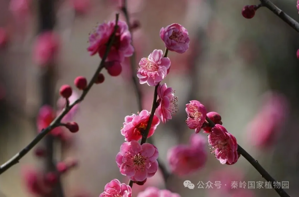 春风拂过秦岭,枝头梅香渐浓。园内梅花次第绽放,朱砂热烈、宫粉温婉、绿萼清雅,将早春的山野晕染成一幅诗意画卷。