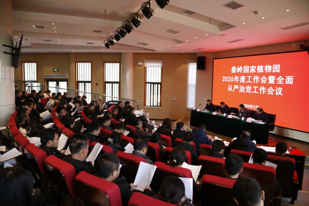 2月2日,秦岭国家植物园召开了2026年度工作会暨全面从严治党工作会议。会议由郝光耀副园长主持,姚晓军园长、省纪委监委驻省生态环境厅纪检监察组刘志生组长、石玉林副园长,驻省生态环境厅纪检监察组工作人员以及植物园全体职工参加会议。