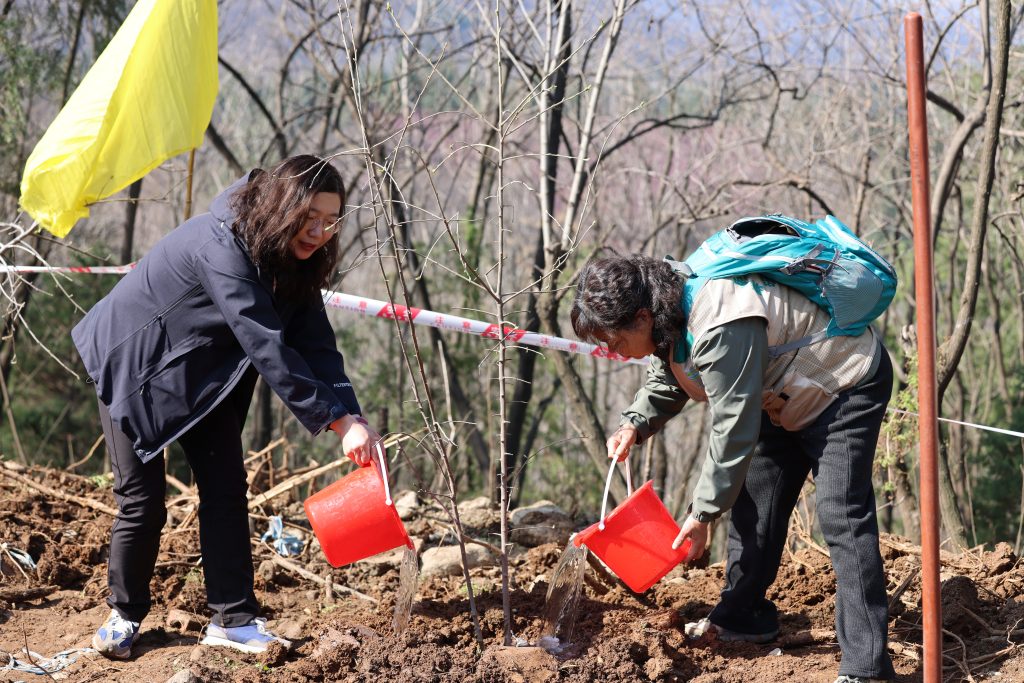 理论课程结束后,参训人员移步至木兰园南侧植树点有序开展现场实操。现场进行翅果油树的全过程栽植,从选苗、树穴开挖、根系处理,到埋栽植、覆土、浇水等步骤进行细致讲解,并对栽植密度、苗干扶正等实操难点进行重点指导。学员们动手实践,切实将课堂所学转化为实操能力,现场学习氛围浓厚。