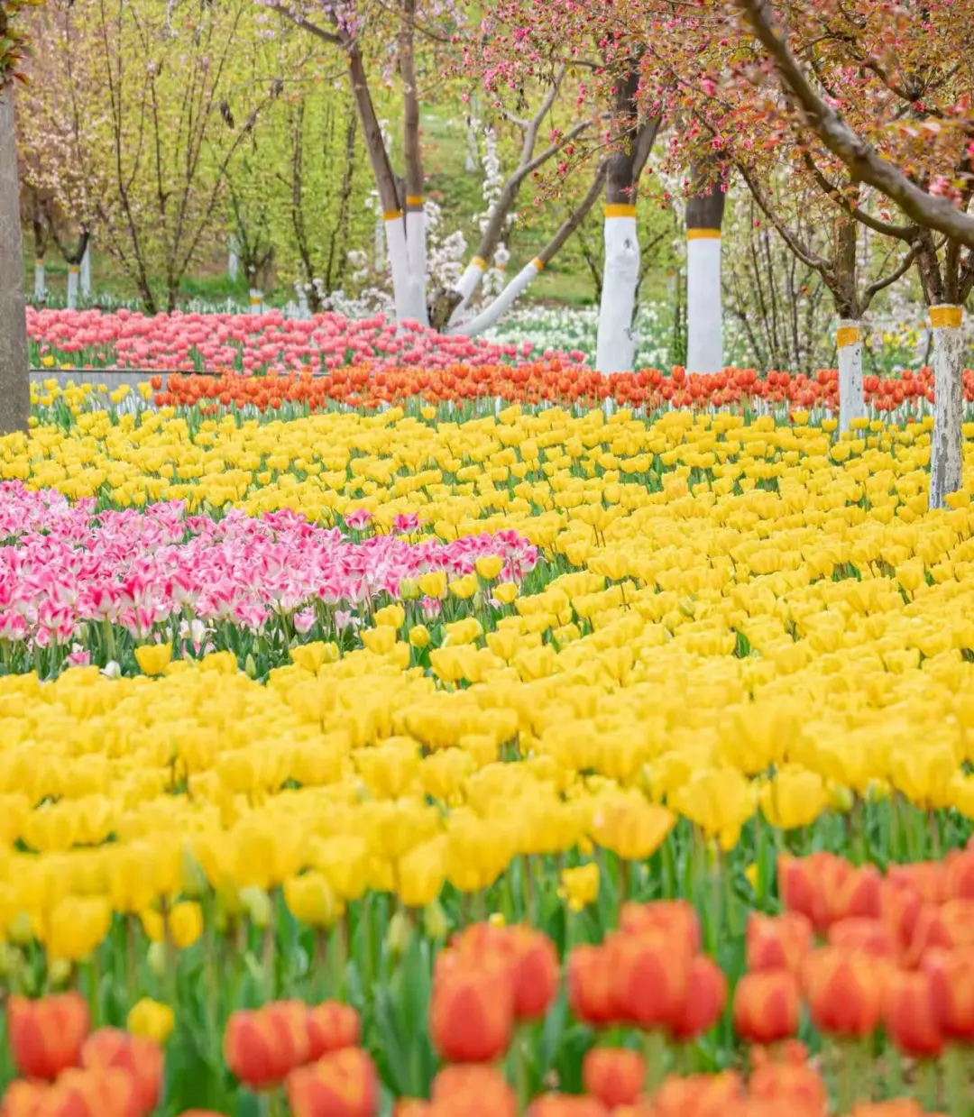 2、童趣路线(步行):沿财神驿站向东步行至萌宠乐园,与可爱小动物亲密互动,治愈满满;再向西行至海棠园与郁金香花海,30余亩繁花盛放,色彩斑斓,是春日最耀眼的视觉盛宴。