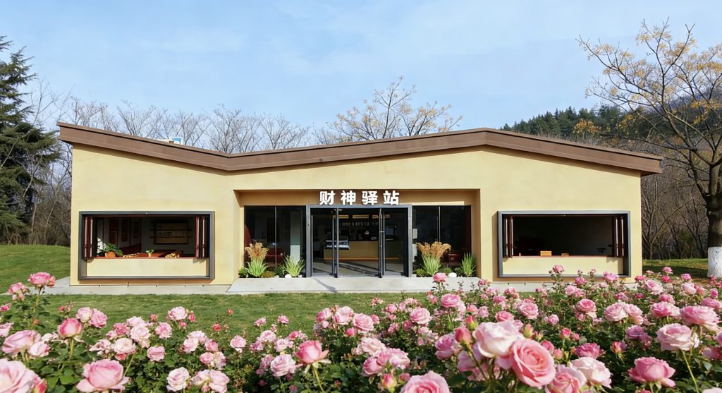 乘车至财神驿站,点一杯发财咖啡,吃一份轻食简餐,凭栏远眺,山风拂面,在治愈时光里,许下春日好运。