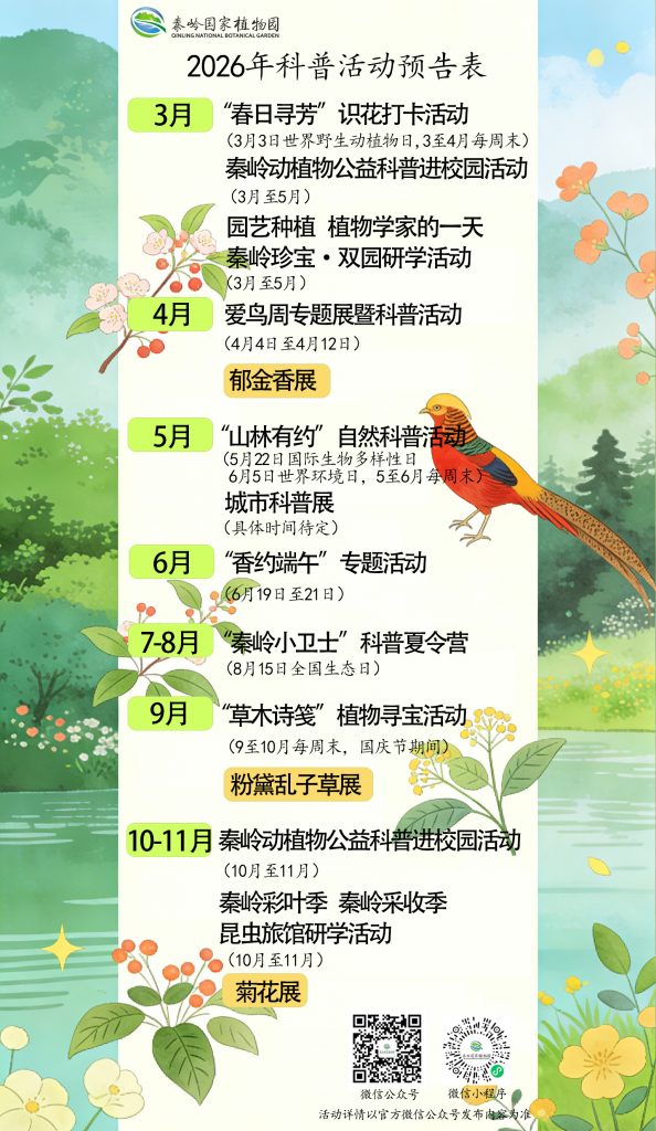 春风拂过秦岭,草木萌动,万物复苏。2026 年,秦岭国家植物园将以“讲好秦岭故事”为核心,串联四季精彩,为公众打造一场贯穿全年的科普盛宴。